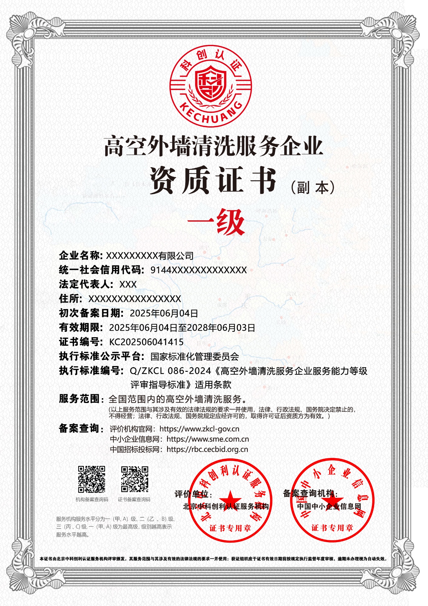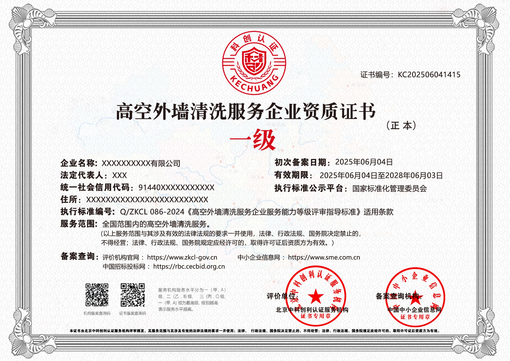 高空外墙清洗服务企业资质证书