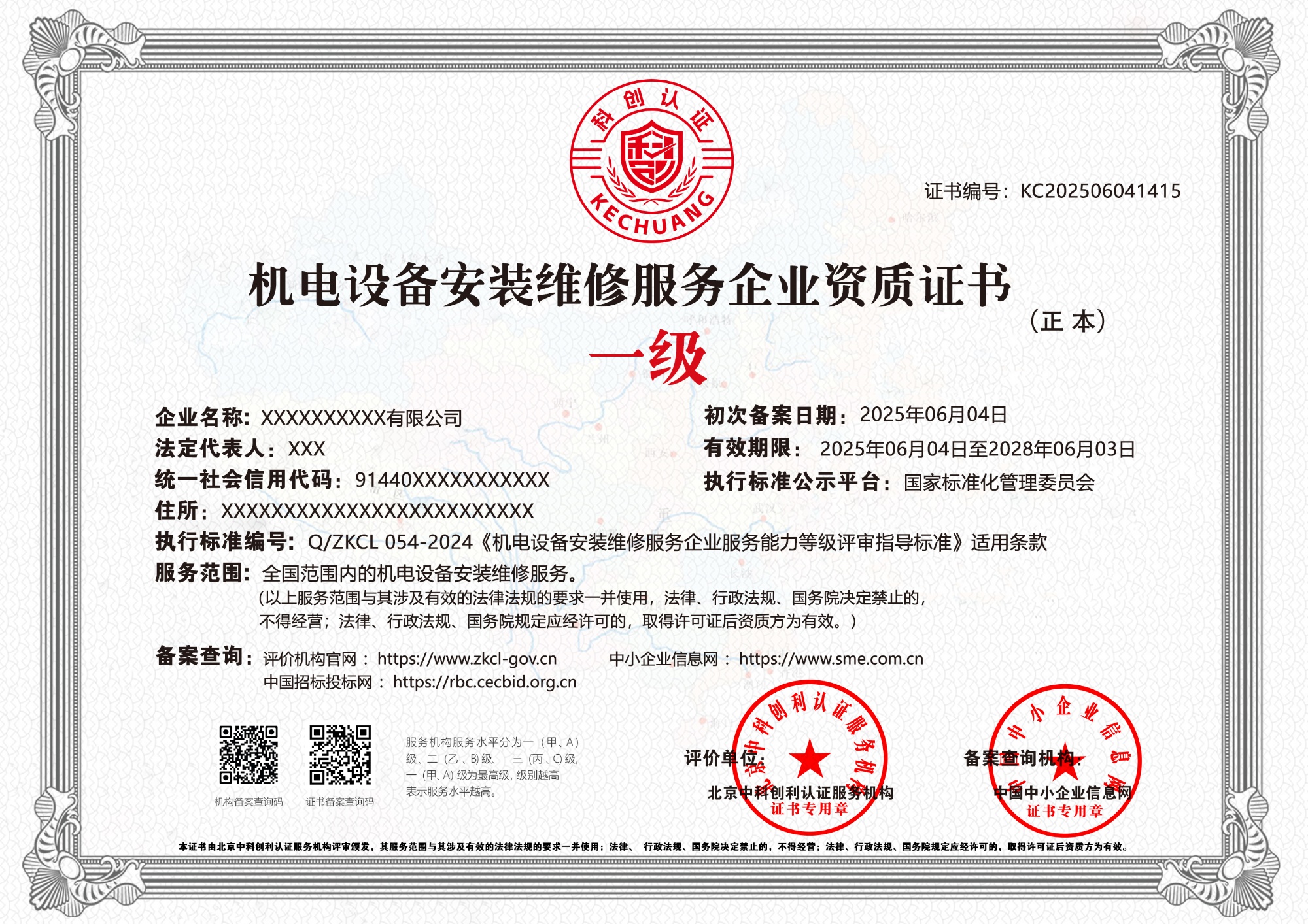 机电设备安装维修服务企业资质证书