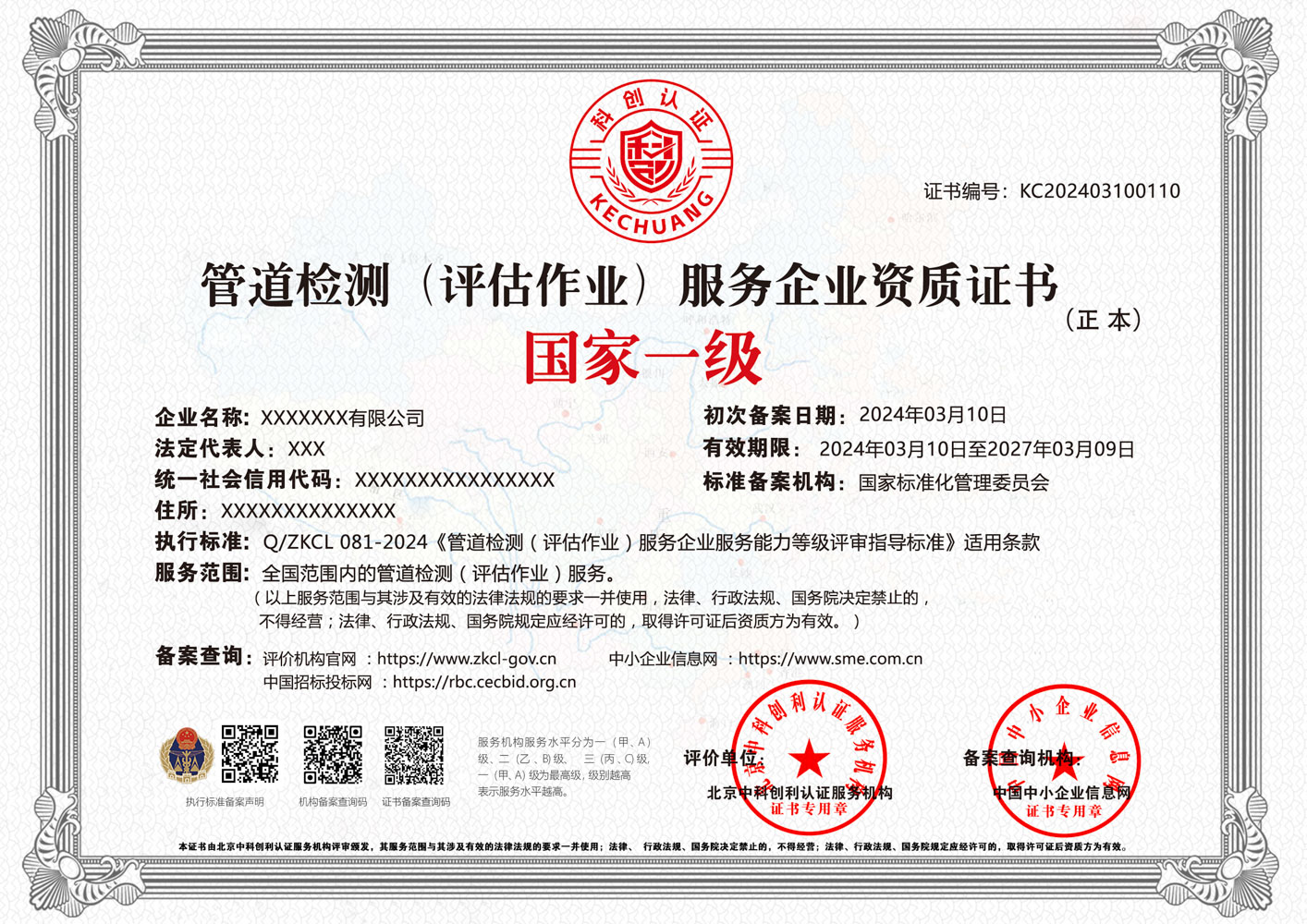 管道检测(评估作业)服务企业资质证书