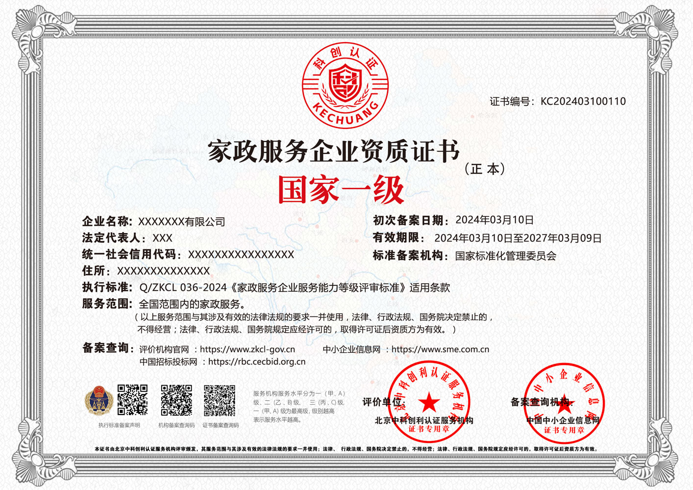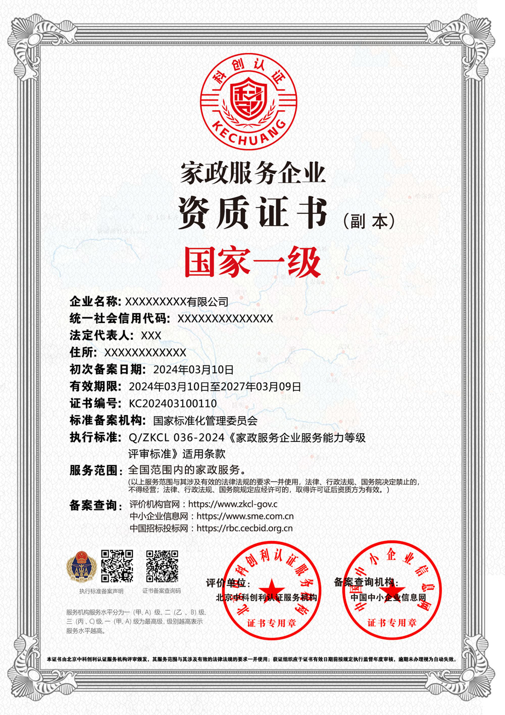 家政服务企业资质证书
