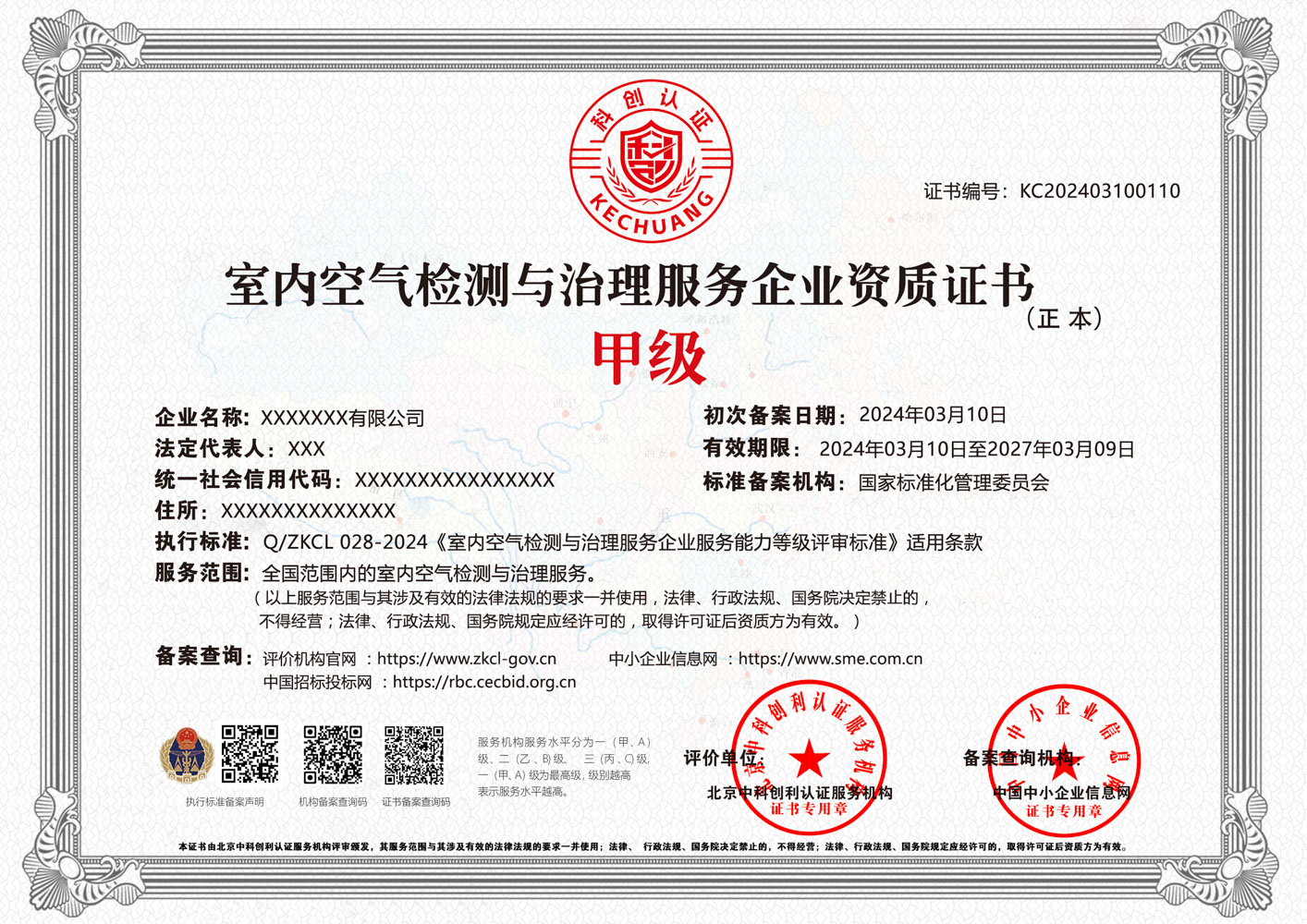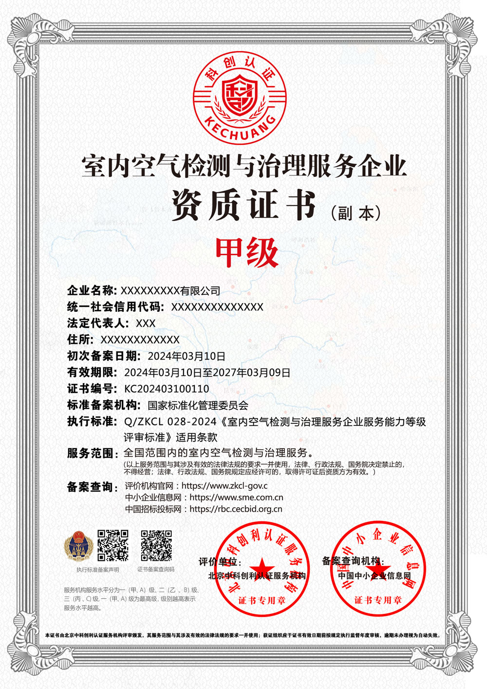 室内空气检测与治理服务企业资质证书